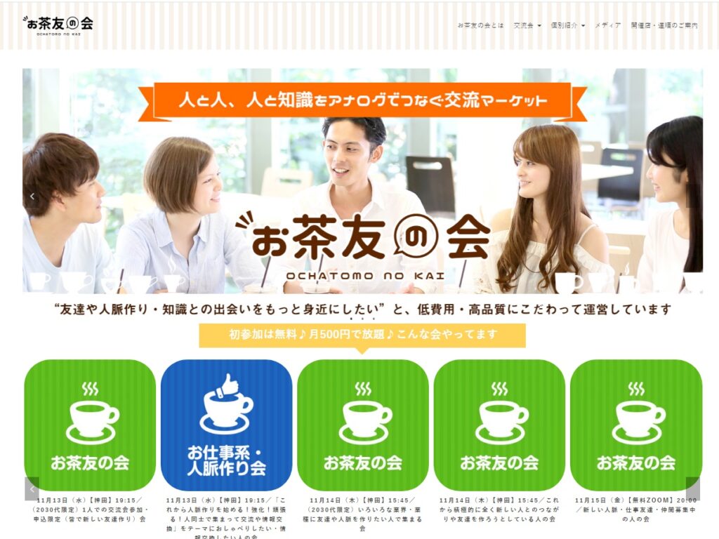 - 参加費はわずか3,000円。追加のマッチング費用は一切ありません。さらに最大規模の交流会(お茶友の会)にも無料で自由に参加できます!